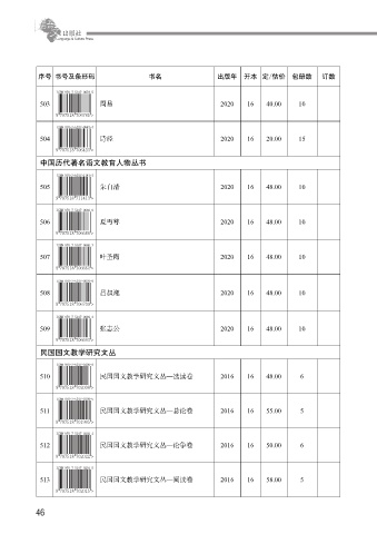 510                民国国文教学研究文丛—选读卷                        2016     16    48.00      6