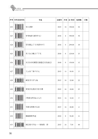序号 书号及条形码 书名 出版年 开本 定/估价 包册数 订数