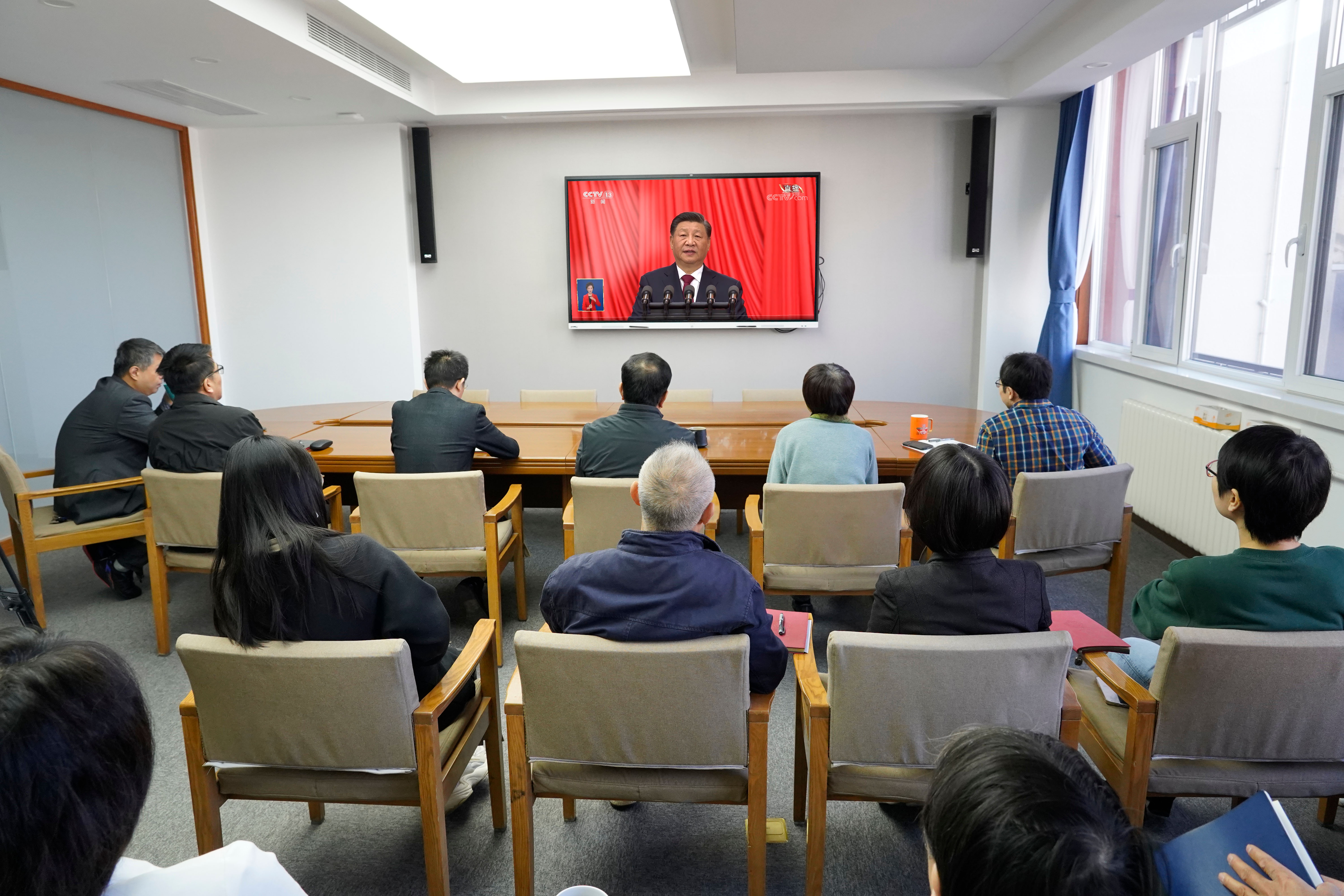 10月16日上午,语文社党总支组织党员集中收听收看党的二十大开幕会,认真学习习近平总书记代表第十九届中央委员会向大会所作的报告。语文社领导班子成员、中层干部和青年党员代表集中收看学习;其余在职党员、退休党员通过多种形式收听收看开幕会直播。
