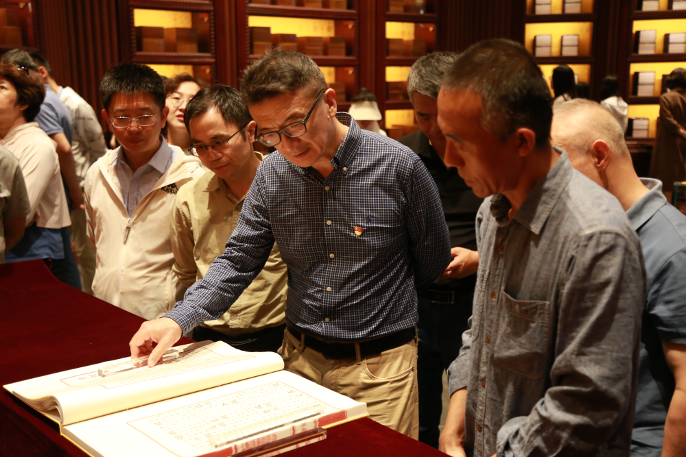 中国国家版本馆坐落于北京中轴线北延、燕山脚下,建设版本馆是以习近平同志为核心的党中央作出的重大决策,是文明大国建设的基础工程,充分体现了我们党传承发展中华文化的高度自觉。在现场解说员的带领下,大家先后参观了“斯文在兹——中华古代文明版本展”“见证伟业——中华民族复兴版本展”基本陈列、“真理之光——马克思主义中国化时代化经典版本展”以及“版本工艺”等主题展览,了解中国历代的典籍、雕版、古籍真本和仿真影印版本等珍贵文物,近距离感受中华文化的深厚历史底蕴和精神力量,感受新中国文化建设的繁荣景象和马克思主义中国化时代化的光辉历程,进一步深刻理解马克思主义基本原理同中华优秀传统文化相结合的重要意义。