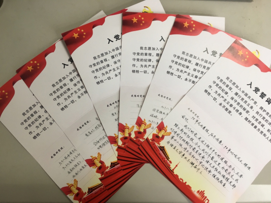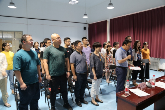 全体党员在党总支书记谷新矿同志的带领下重温入党誓词。