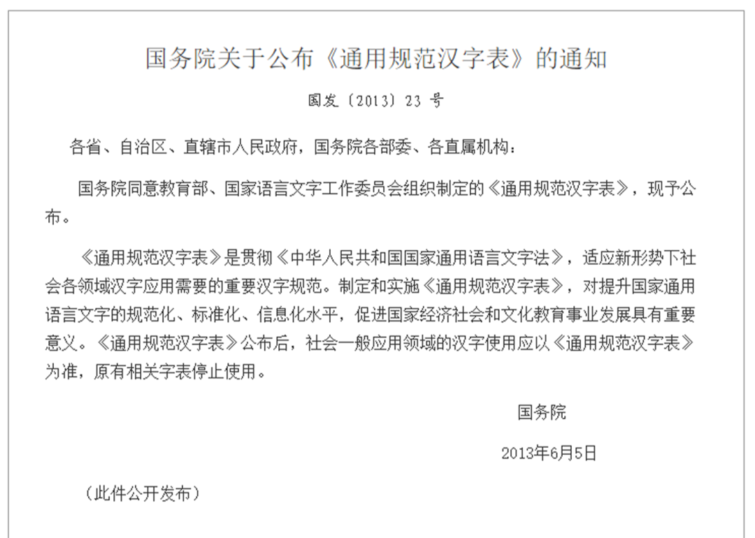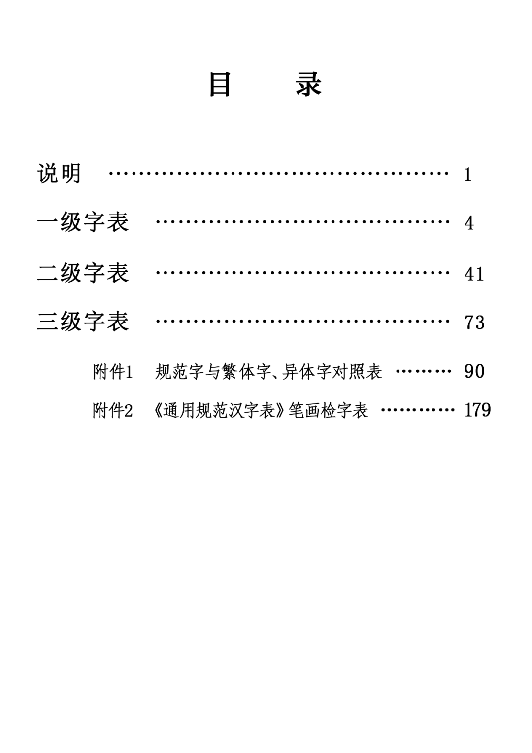 为方便使用,本表后附《规范与繁体字异体字对照表》和《〈通用规范汉字表〉笔画检字表》两个附表。