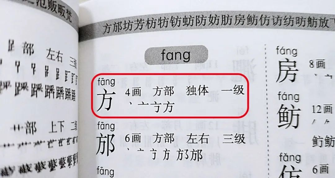 《通用规范汉字笔顺》,这本书中列出了“方”的笔顺:点、横、横折钩,最后才是撇。一目了然,方便读者查阅跟写。