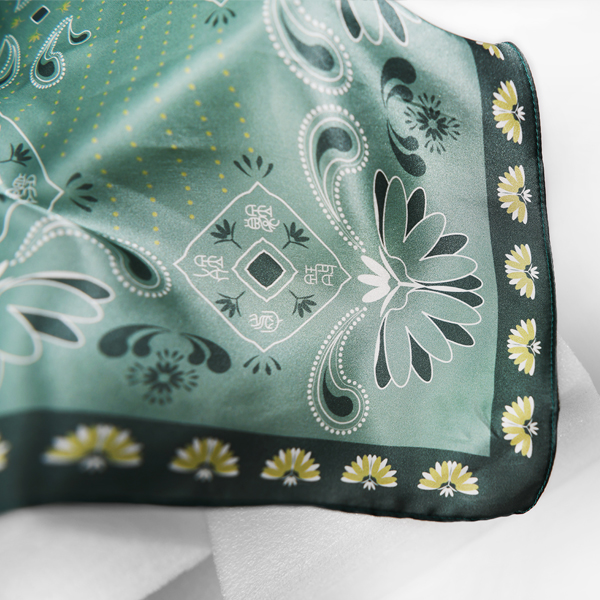 真丝双层,复古菱形图案,搭配远古文字,既精美又神秘。