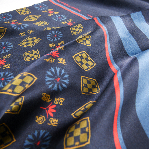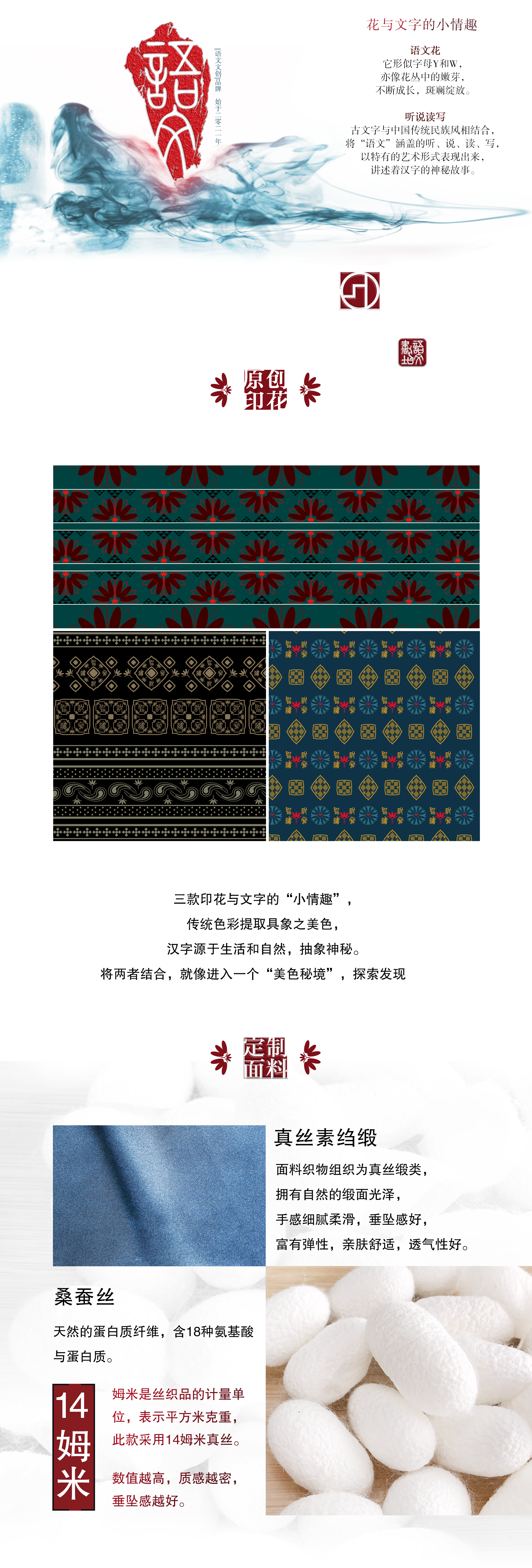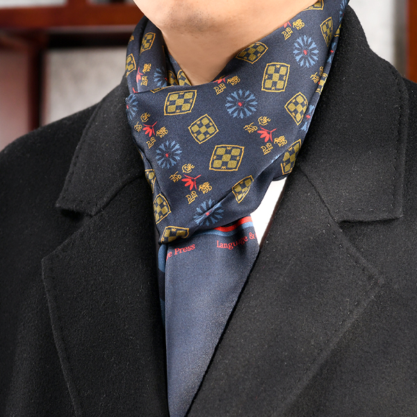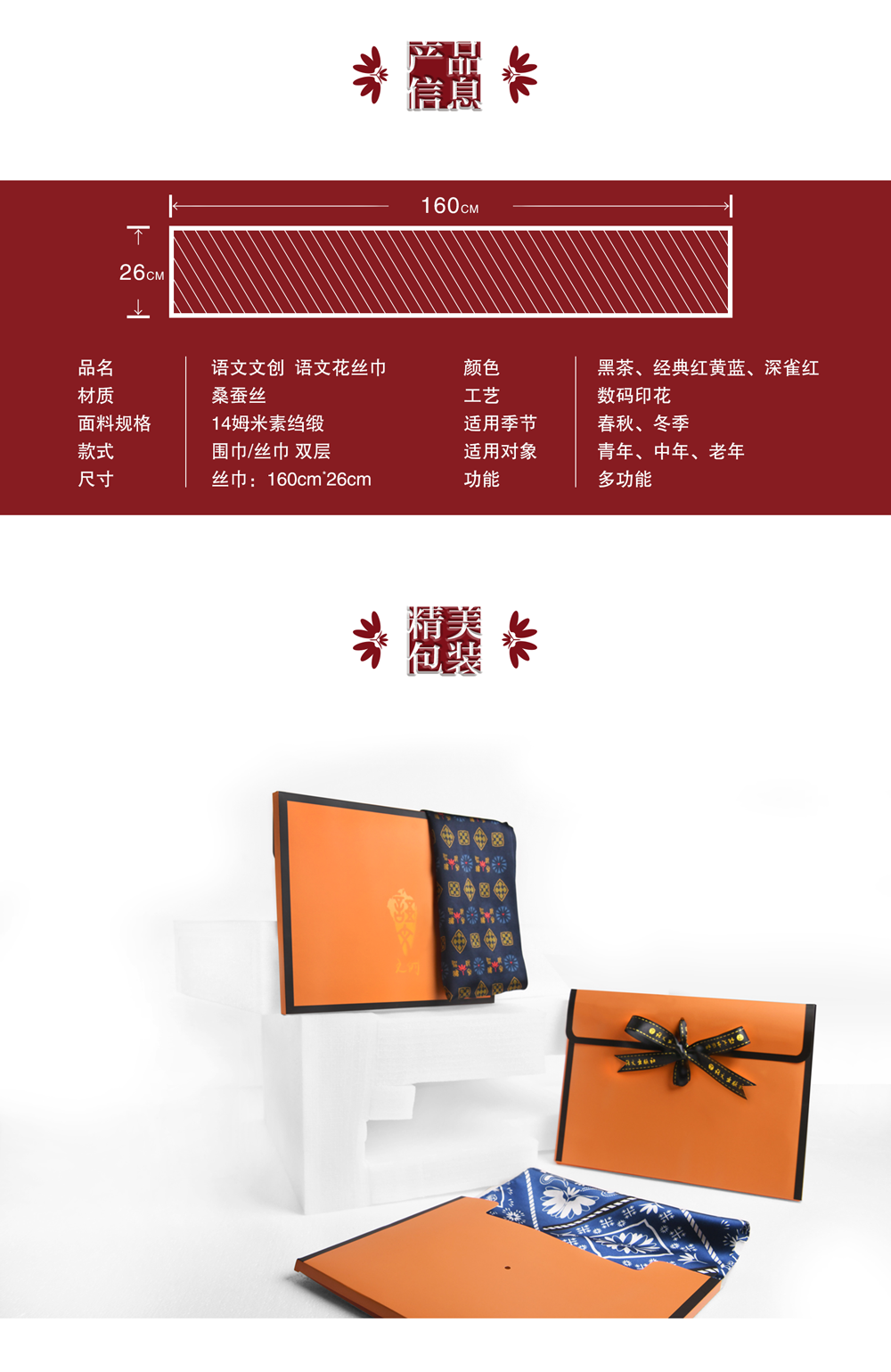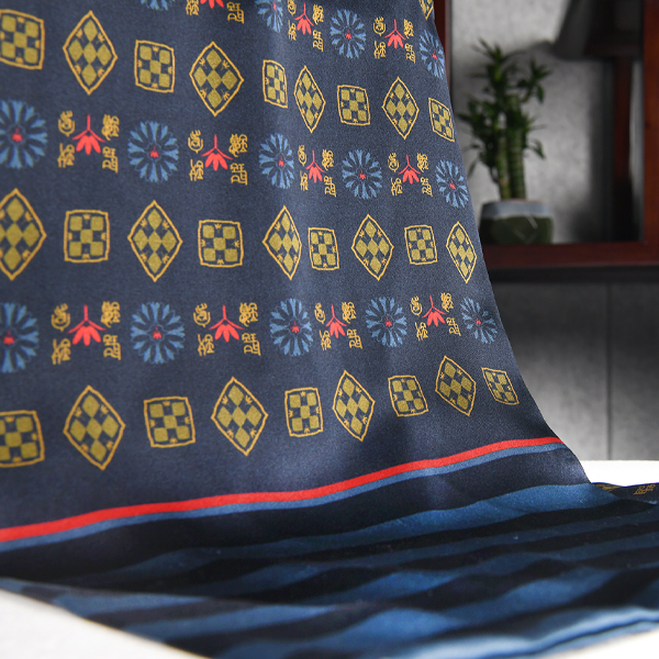 真丝双层,复古菱形图案,搭配远古文字,既精美又神秘。